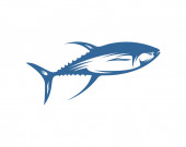 Sylwetka tuńczyka i podmiotu zajmującego się gospodarstwem morskim