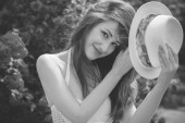 Gorący letni styl dla dziewczyn, czas wakacji, moda Latynoski model opalenizny outdoor