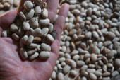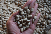 Długie nasiona fasoli z naturalnym tłem. Nasiona są na procesie suszenia