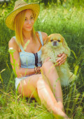 Gorący letni styl dla dziewczyn, czas wakacji, moda tan model outdoor
