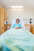 portret męski pacjenta leżącego na szpitalnym łóżku