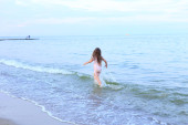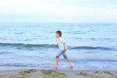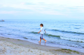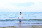 Zdjęcie "Chłopiec biega po wodzie w pobliżu morza." może być wykorzystywane do celów osobistych i komercyjnych zgodnie z warunkami zakupionej licencji Royalty-free. Obraz jest dostępny do pobrania w jakości wysokiej rozdzielczości do 5760x3840.