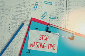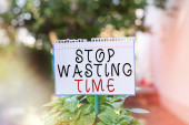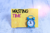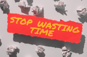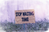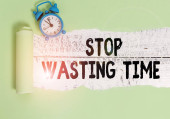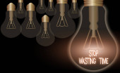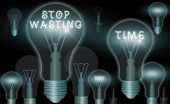 Pismo odręczne Stop marnowaniu czasu. Concept meaning Organizing Management Schedule lets do it Start Now Realistyczne kolorowe vintage żarówki, pomysł rozwiązanie rozwiązanie pomysł myślenia.