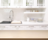 Zamazany widok na nowoczesne stylowe wnętrze kuchni