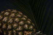 pyszne słodkie ananasy i liści palmowych izolowane na żółto