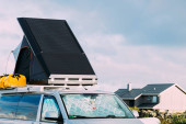 Zdjęcie "Biali mężczyźni w jego 40-tych Power Pressure mycia rekreacyjny pojazd kamper Van Roof Wyposażony w panele słoneczne. Kempingi Pre Season Motorhome Maintenance." może być wykorzystywane do celów osobistych i komercyjnych zgodnie z warunkami zakupionej licencji Royalty-free. Obraz jest dostępny do pobrania w jakości wysokiej rozdzielczości do 5760x3840.