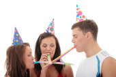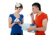 człowiek w stronę kapelusz i dziewczynka jedzenie ciasta.