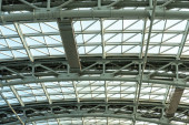 Zdjęcie "Abstrakcyjna architektura high-tech tło zdjęcie, Duża stalowa kratownica konstrukcji, ramy dachu i blachy stalowej w budowie placu budowy na lotnisku." może być wykorzystywane do celów osobistych i komercyjnych zgodnie z warunkami zakupionej licencji Royalty-free. Obraz jest dostępny do pobrania w jakości wysokiej rozdzielczości do 5760x3840.