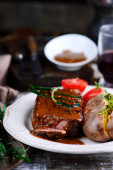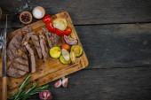 Grillowany stek z sosem chimichurri.. styl rustic.selective ostrości