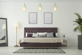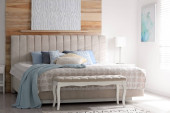Zdjęcie "Stylowe wnętrza pokoju z dużym wygodnym łóżkiem i pięknymi obrazami" może być wykorzystywane do celów osobistych i komercyjnych zgodnie z warunkami zakupionej licencji Royalty-free. Obraz jest dostępny do pobrania w jakości wysokiej rozdzielczości do 5760x3840.
