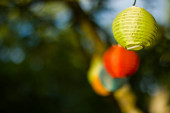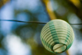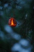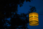 Latarnia na podwórku, światło nocne i ciepłe, latarnie wiszące, światło naturalne, czas wieczorny.