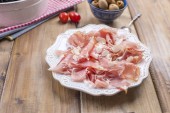 pyszne plasterki szynki. Strona półmisek wędlin różne