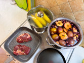 Zdjęcie "Omlet jajeczny w rękach kucharza w kuchni domowej, na tle białego pieca elektrycznego." może być wykorzystywane do celów osobistych i komercyjnych zgodnie z warunkami zakupionej licencji Royalty-free. Obraz jest dostępny do pobrania w jakości wysokiej rozdzielczości do 5760x3840.