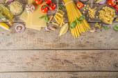Zdjęcie "Zestaw różnych surowych makaronów i przypraw. Gotowanie włoskiej koncepcji makaronu ze świeżych ziół i warzyw. Styl rustykalny, drewniane tło" może być wykorzystywane do celów osobistych i komercyjnych zgodnie z warunkami zakupionej licencji Royalty-free. Obraz jest dostępny do pobrania w jakości wysokiej rozdzielczości do 5760x3840.