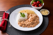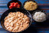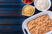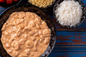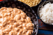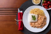 Zdjęcie "Stroganow z kurczaka z ryżem, sałatką i słomką ziemniaczaną." może być wykorzystywane do celów osobistych i komercyjnych zgodnie z warunkami zakupionej licencji Royalty-free. Obraz jest dostępny do pobrania w jakości wysokiej rozdzielczości do 5760x3840.