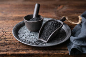 Zdjęcie "świeży czarny chleb żytni na desce do krojenia z przyprawami posypanymi mąką na czarnym drewnianym stole" może być wykorzystywane do celów osobistych i komercyjnych zgodnie z warunkami zakupionej licencji Royalty-free. Obraz jest dostępny do pobrania w jakości wysokiej rozdzielczości do 5760x3840.