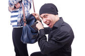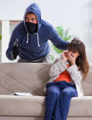 Uzbrojony mężczyzna napadający na młodą kobietę w domu