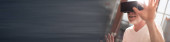 tło rąk człowieka trzymając wideo i konsoli joystick gry z lekkim rozbłyskiem selektywne skupione