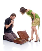 Zdjęcie "para otwiera walizkę z niespodzianką" może być wykorzystywane do celów osobistych i komercyjnych zgodnie z warunkami zakupionej licencji Royalty-free. Obraz jest dostępny do pobrania w jakości wysokiej rozdzielczości do 5760x3840.