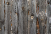 Tekstura starej, niemalowanej ściany drewnianych desek. Dużo węzłów na deskach.