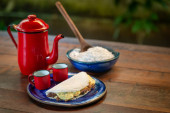 Zdjęcie "Tapioki są dość popularne w północno-wschodniej Brazylii, zazwyczaj towarzyszy im kawa." może być wykorzystywane do celów osobistych i komercyjnych zgodnie z warunkami zakupionej licencji Royalty-free. Obraz jest dostępny do pobrania w jakości wysokiej rozdzielczości do 5760x3840.