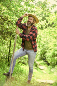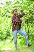 Zdjęcie "Kopalnia do siewu roślin. człowiek z łopatą kopiący łóżko ogrodowe lub farmę. Robotnik kopie czarną ziemię łopatą w ogrodzie warzywnym. człowiek rozluźnia ziemię na ziemi uprawnej" może być wykorzystywane do celów osobistych i komercyjnych zgodnie z warunkami zakupionej licencji Royalty-free. Obraz jest dostępny do pobrania w jakości wysokiej rozdzielczości do 5760x3840.