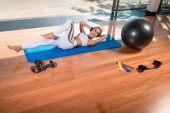 Zdjęcie "kobieta joga fit kompleks i relaks w domu." może być wykorzystywane do celów osobistych i komercyjnych zgodnie z warunkami zakupionej licencji Royalty-free. Obraz jest dostępny do pobrania w jakości wysokiej rozdzielczości do 5760x3840.