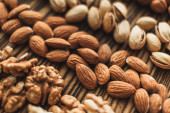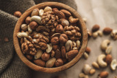 Zdjęcie "Różne rodzaje orzechów, mieszanka orzechów migdałów, orzechów laskowych, orzechów nerkowca, orzeszków ziemnych w drewnianej misce. Zamknij drzwi. Wysokiej jakości zdjęcie" może być wykorzystywane do celów osobistych i komercyjnych zgodnie z warunkami zakupionej licencji Royalty-free. Obraz jest dostępny do pobrania w jakości wysokiej rozdzielczości do 5760x3840.