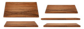 Latająca deska rozkroju odizolowana na biało. Drewniana koncepcja deski do krojenia dla Twojego projektu. Drewno kuchnia deska prostokąt formularz.