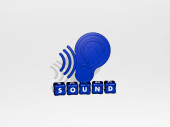 połączenie Dźwięku zbudowanego przez litery sześcienne z najwyższej perspektywy, doskonałe do prezentacji koncepcyjnej. Ilustracja i muzyka