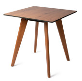 Drewniany stół z prostokątnym blatem, izolowany na biało