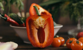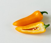 Pieprz czerwony izolowany na żółtym tle.