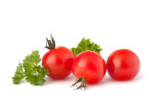 dojrzałe pomidory rzymskie (Solanum lycopersicum) z białym tłem