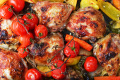 paluszki z kurczaka z warzywami i przyprawami ze złotą skórką i warzywami