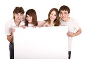 Zdjęcie "Grupa młodzieży z banerem." może być wykorzystywane do celów osobistych i komercyjnych zgodnie z warunkami zakupionej licencji Royalty-free. Obraz jest dostępny do pobrania w jakości wysokiej rozdzielczości do 5760x3840.