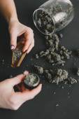 Zdjęcie "Zbliżenie marihuany tępym szlifierką. Koncepcja zażywania konopi. Przygotowuję i toczę marihuanę. Toczenie marihuany.." może być wykorzystywane do celów osobistych i komercyjnych zgodnie z warunkami zakupionej licencji Royalty-free. Obraz jest dostępny do pobrania w jakości wysokiej rozdzielczości do 5760x3840.