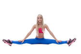 Zdjęcie "ładny długowłosy blondynka robi ćwiczenia rozciągające" może być wykorzystywane do celów osobistych i komercyjnych zgodnie z warunkami zakupionej licencji Royalty-free. Obraz jest dostępny do pobrania w jakości wysokiej rozdzielczości do 5760x3840.