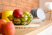 Zdjęcie "Kosz ze świeżymi owocami na stole w kuchni" może być wykorzystywane do celów osobistych i komercyjnych zgodnie z warunkami zakupionej licencji Royalty-free. Obraz jest dostępny do pobrania w jakości wysokiej rozdzielczości do 5760x3840.