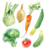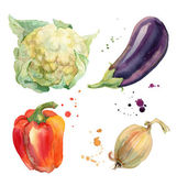 Akwarela malowana kolekcja warzyw. Świeże kolorowe warzywa tle