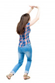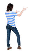 Zdjęcie "Widok kobiety wskazujące z tyłu." może być wykorzystywane do celów osobistych i komercyjnych zgodnie z warunkami zakupionej licencji Royalty-free. Obraz jest dostępny do pobrania w jakości wysokiej rozdzielczości do 5760x3840.