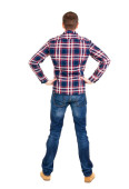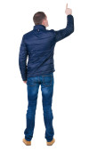 Widok wskazując młodych mężczyzn koszula i jeansy z tyłu