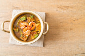 Zdjęcie "Zupa kwaśna z Tamarind Paste z krewetkami i Omeletem Warzywnym - azjatycki styl żywności" może być wykorzystywane do celów osobistych i komercyjnych zgodnie z warunkami zakupionej licencji Royalty-free. Obraz jest dostępny do pobrania w jakości wysokiej rozdzielczości do 5760x3840.