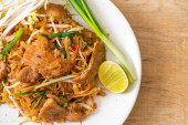smażony makaron ryżowy z wieprzowiną w azjatyckim stylu