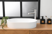Zdjęcie "Zbliżenie na elegancki biały umywalka łazienka ze stylowym czarnym kranem i marmurowe płytki na ścianie" może być wykorzystywane do celów osobistych i komercyjnych zgodnie z warunkami zakupionej licencji Royalty-free. Obraz jest dostępny do pobrania w jakości wysokiej rozdzielczości do 5760x3840.
