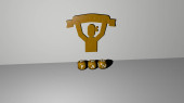 MULTIPLE CIRCLE rzuca cień na dwa światła. 3D ilustracja rzeźby metalicznej na białym tle o łagodnej fakturze. abstrakcyjny i niebieski