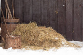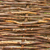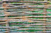 Ogrodzenie dekoracyjne z poziomych gałęzi. Tło czasu letniego