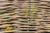 Zdjęcie "Ogrodzenie dekoracyjne z poziomych gałęzi. Tło czasu letniego" może być wykorzystywane do celów osobistych i komercyjnych zgodnie z warunkami zakupionej licencji Royalty-free. Obraz jest dostępny do pobrania w jakości wysokiej rozdzielczości do 5760x3840.