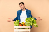 Zdjęcie "młody blondynka człowiek trzyma seler odizolowany na niebieskim tle uśmiechając się i pokazując znak zwycięstwa" może być wykorzystywane do celów osobistych i komercyjnych zgodnie z warunkami zakupionej licencji Royalty-free. Obraz jest dostępny do pobrania w jakości wysokiej rozdzielczości do 5760x3840.