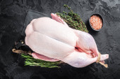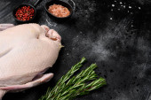 Zdjęcie "Surowa kaczka, różowy pieprz i rozmaryn. Czarne tło. Widok góry. Miejsce na tekst." może być wykorzystywane do celów osobistych i komercyjnych zgodnie z warunkami zakupionej licencji Royalty-free. Obraz jest dostępny do pobrania w jakości wysokiej rozdzielczości do 5760x3840.