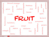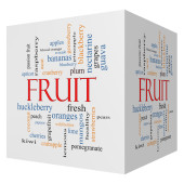 owoce słowo chmura koncepcja na 3d sześcian tablicy